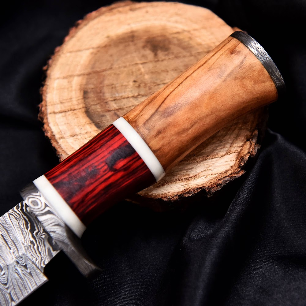 – The custom handle, crafted from exotic woods, offers not only a distinctive look but also superior grip and handling.