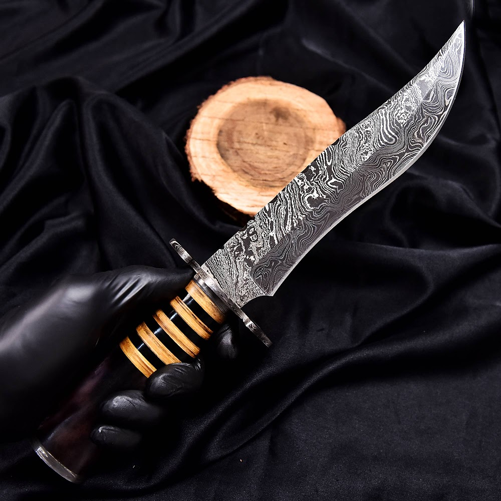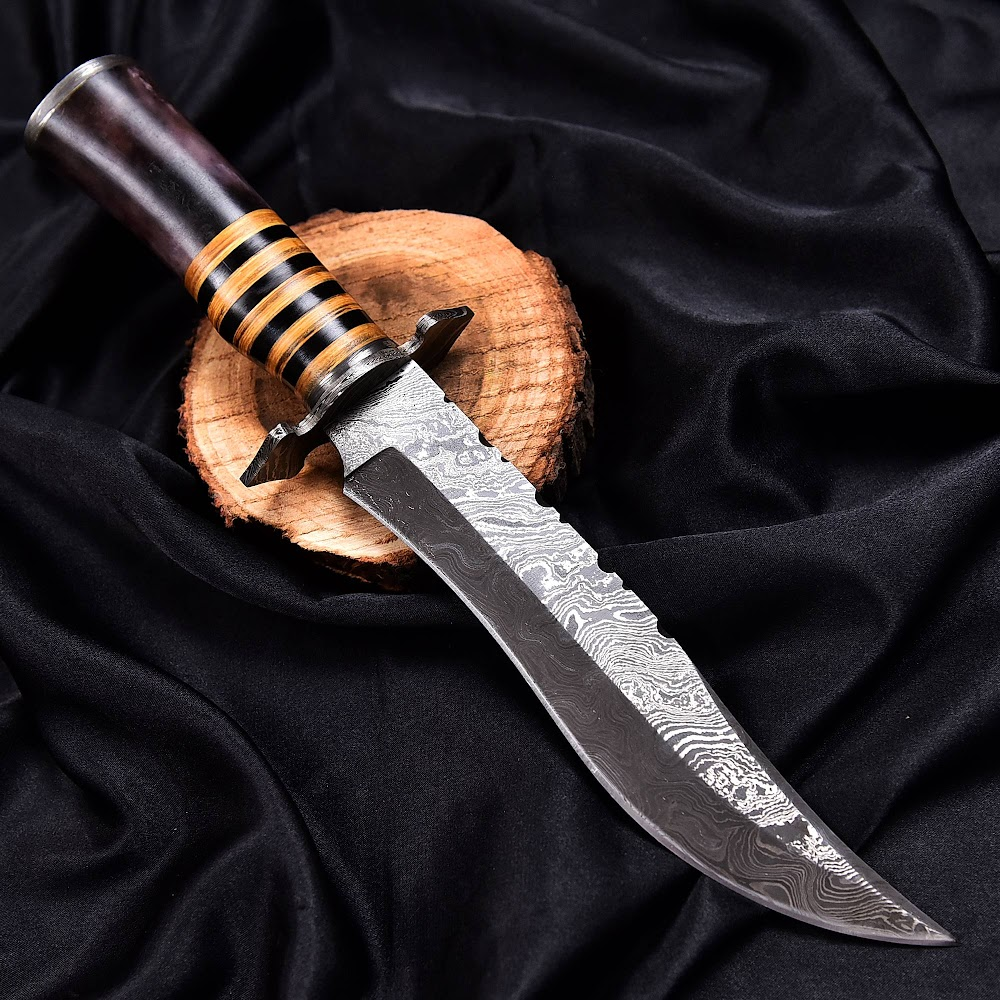 ⭐⭐⭐⭐⭐ Experience timeless elegance and power with our meticulously crafted Damascus Steel Bowie Knife. This piece is an exceptional blend of artistry and utility, designed for those who appreciate both beauty and function. The striking patterned blade is a testament to the centuries-old Damascus technique, making each knife unique in its intricate design.
