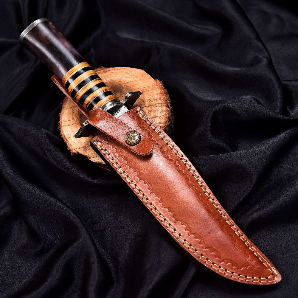 – **Handmade Leather Sheath**: Every knife comes with a premium leather sheath, ensuring safekeeping and enhancing the knife’s aesthetic appeal. The sheath is meticulously handcrafted, featuring sturdy stitching and an easy secure snap button.