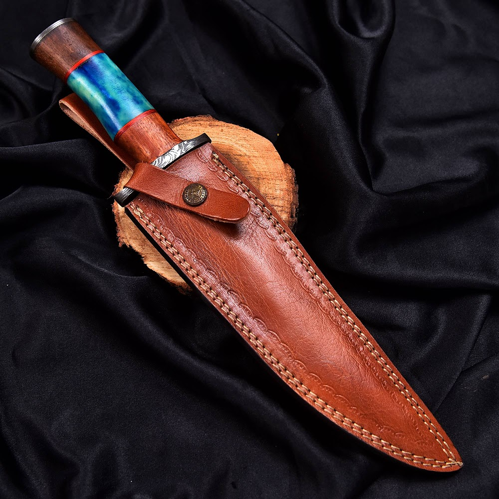 Handcrafted Damascus Steel outdoor lifestyle Knife with Exquisite Wooden Resin Handle and Leather Sheath, Perfect for Outdoor Enthusiasts