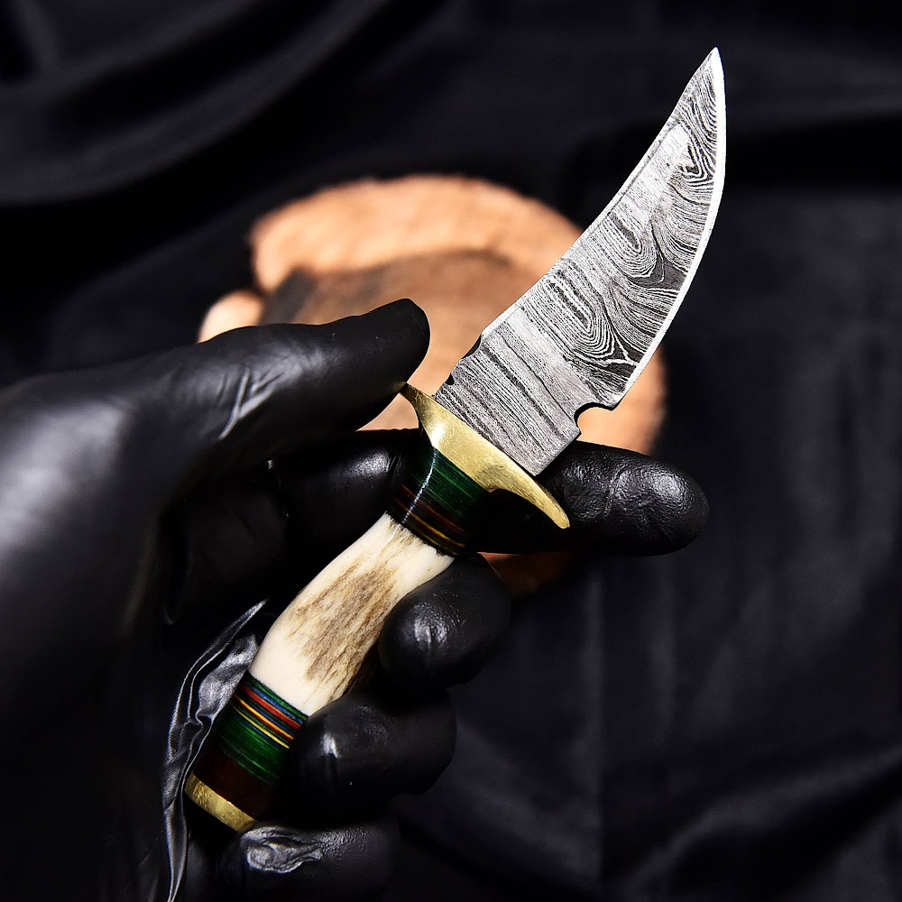 – **Handle Material**: The polished natural horn handle exudes elegance and comfort, providing a firm grip and allowing for precise control. Enhanced with a rich brass guard, the handle not only balances the knife but adds a touch of luxury to its rugged undertone.